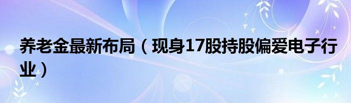 大家好,綜合小編來為大家講解下。養老金最新布局,現身17股持股偏愛電子行業很多人還不知道,現在讓我們一起來看看吧!