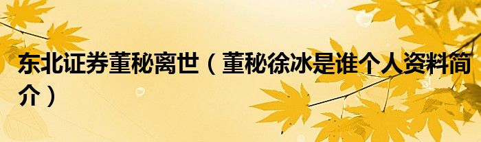 大家好,綜合小編來為大家講解下。東北證券董秘離世,董秘徐冰是誰個人資料簡介很多人還不知道,現在讓我們一起來看看吧!