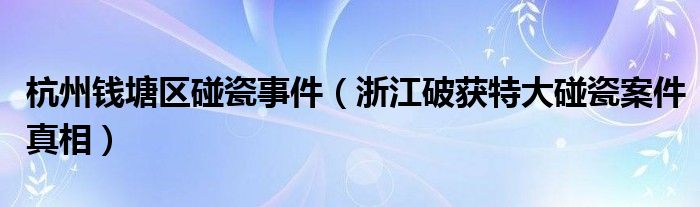 大家好,綜合小編來為大家講解下。杭州錢塘區碰瓷事件,浙江破獲特大碰瓷案件真相很多人還不知道,現在讓我們一起來看看吧!