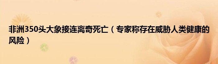 大家好,綜合小編來為大家講解下。非洲350頭大象接連離奇死亡,專家稱存在威脅人類健康的風險很多人還不知道,現在讓我們一起來看看吧!