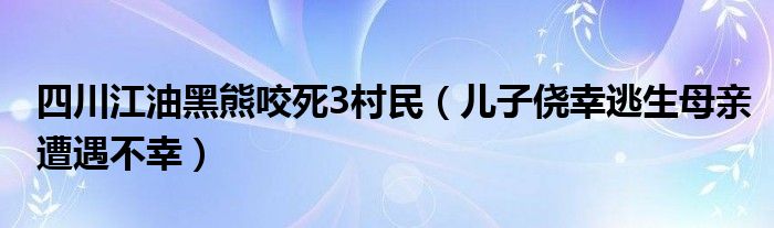 大家好,綜合小編來為大家講解下。四川江油黑熊咬死3村民,兒子僥幸逃生母親遭遇不幸很多人還不知道,現在讓我們一起來看看吧!