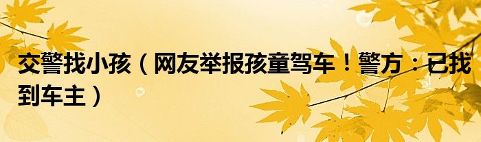 大家好,綜合小編來為大家講解下。交警找小孩,網(wǎng)友舉報孩童駕車!警方:已找到車主很多人還不知道,現(xiàn)在讓我們一起來看看吧!