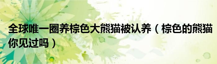大家好,綜合小編來為大家講解下。全球唯一圈養棕色大熊貓被認養,棕色的熊貓你見過嗎很多人還不知道,現在讓我們一起來看看吧!