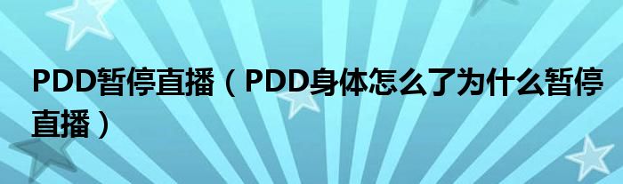 大家好,綜合小編來(lái)為大家講解下。PDD暫停直播,PDD身體怎么了為什么暫停直播很多人還不知道,現(xiàn)在讓我們一起來(lái)看看吧!