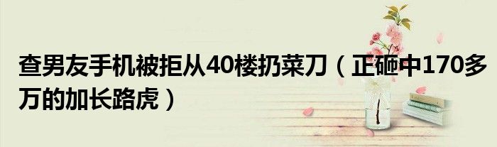 導(dǎo)讀 大家好,綜合小編來(lái)為大家講解下。查男友手機(jī)被拒從40樓扔菜刀,正砸中170多萬(wàn)的加長(zhǎng)路虎很多人還不知道,現(xiàn)在讓我們一起來(lái)看看吧!  原