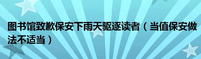 大家好,綜合小編來為大家講解下。圖書館致歉保安下雨天驅逐讀者,當值保安做法不適當很多人還不知道,現在讓我們一起來看看吧!