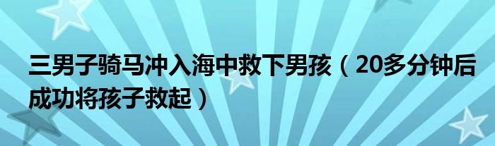 大家好,綜合小編來為大家講解下。三男子騎馬沖入海中救下男孩,20多分鐘后成功將孩子救起很多人還不知道,現在讓我們一起來看看吧!