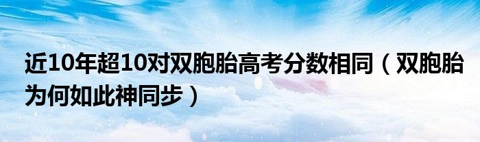 大家好,綜合小編來(lái)為大家講解下。近10年超10對(duì)雙胞胎高考分?jǐn)?shù)相同,雙胞胎為何如此神同步很多人還不知道,現(xiàn)在讓我們一起來(lái)看看吧!