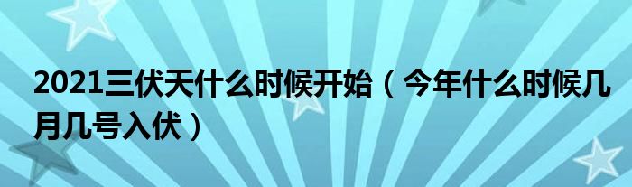 大家好,綜合小編來為大家講解下。2021三伏天什么時候開始,今年什么時候幾月幾號入伏很多人還不知道,現(xiàn)在讓我們一起來看看吧!