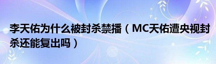 大家好,綜合小編來為大家講解下。李天佑為什么被封殺禁播,MC天佑遭央視封殺還能復出嗎很多人還不知道,現在讓我們一起來看看吧!