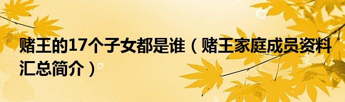 大家好,綜合小編來為大家講解下。賭王的17個子女都是誰,賭王家庭成員資料匯總簡介很多人還不知道,現在讓我們一起來看看吧!