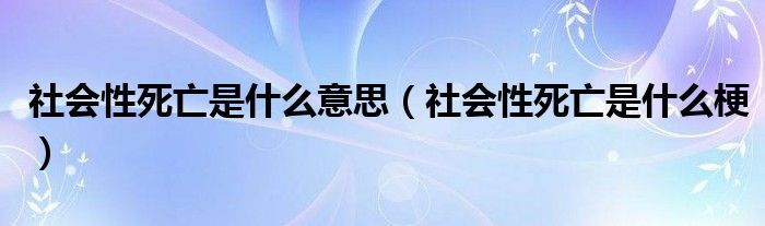 大家好,綜合小編來為大家講解下。社會性死亡是什么意思,社會性死亡是什么梗很多人還不知道,現(xiàn)在讓我們一起來看看吧!