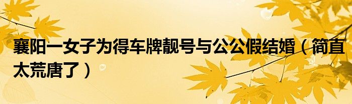 大家好,綜合小編來為大家講解下。襄陽一女子為得車牌靚號與公公假結婚,簡直太荒唐了很多人還不知道,現在讓我們一起來看看吧!