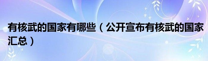 大家好,綜合小編來為大家講解下。有核武的國家有哪些,公開宣布有核武的國家匯總很多人還不知道,現在讓我們一起來看看吧!
