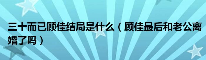 大家好,綜合小編來為大家講解下。三十而已顧佳結局是什么,顧佳最后和老公離婚了嗎很多人還不知道,現在讓我們一起來看看吧!