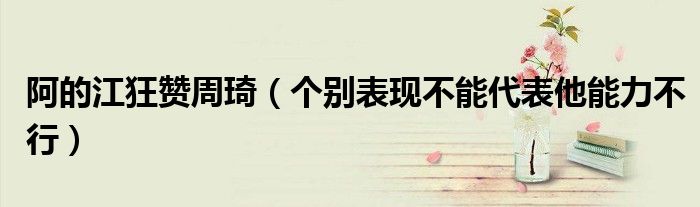 大家好,綜合小編來為大家講解下。阿的江狂贊周琦,個別表現不能代表他能力不行很多人還不知道,現在讓我們一起來看看吧!