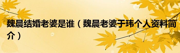 大家好,綜合小編來為大家講解下。魏晨結婚老婆是誰,魏晨老婆于瑋個人資料簡介很多人還不知道,現在讓我們一起來看看吧!