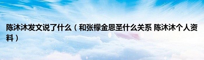 大家好,綜合小編來為大家講解下。陳沐沐發(fā)文說了什么,和張檬金恩圣什么關(guān)系 陳沐沐個(gè)人資料很多人還不知道,現(xiàn)在讓我們一起來看看吧!
