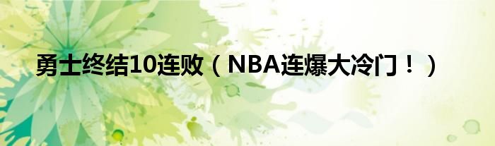 大家好,綜合小編來為大家講解下。勇士終結10連敗,NBA連爆大冷門!很多人還不知道,現在讓我們一起來看看吧!