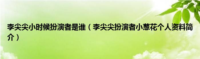大家好,綜合小編來為大家講解下。李尖尖小時候扮演者是誰,李尖尖扮演者小蔥花個人資料簡介很多人還不知道,現在讓我們一起來看看吧!