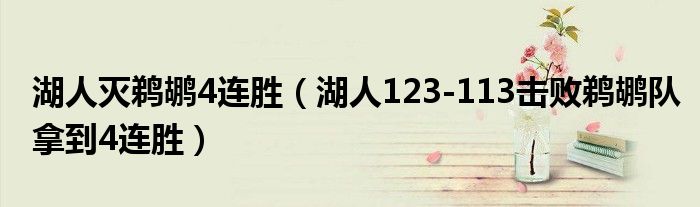 大家好,綜合小編來為大家講解下。湖人滅鵜鶘4連勝,湖人123-113擊敗鵜鶘隊拿到4連勝很多人還不知道,現(xiàn)在讓我們一起來看看吧!
