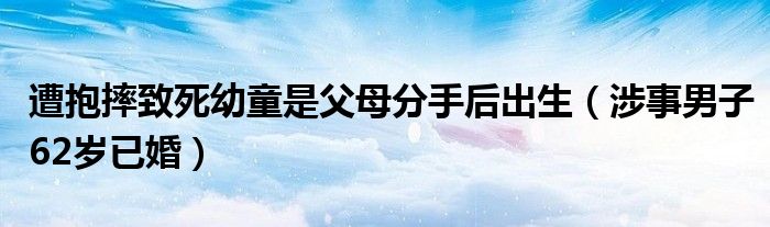 大家好,綜合小編來為大家講解下。遭抱摔致死幼童是父母分手后出生,涉事男子62歲已婚很多人還不知道,現在讓我們一起來看看吧!