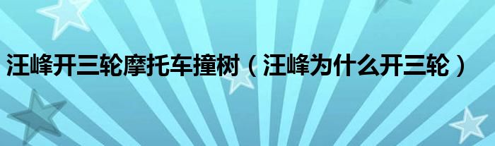 大家好,綜合小編來為大家講解下。汪峰開三輪摩托車撞樹,汪峰為什么開三輪很多人還不知道,現在讓我們一起來看看吧!