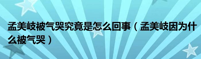 大家好,綜合小編來為大家講解下。孟美岐被氣哭究竟是怎么回事,孟美岐因為什么被氣哭很多人還不知道,現在讓我們一起來看看吧!