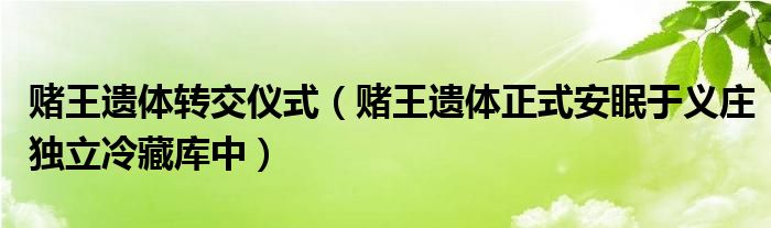 大家好,綜合小編來為大家講解下。賭王遺體轉(zhuǎn)交儀式,賭王遺體正式安眠于義莊獨立冷藏庫中很多人還不知道,現(xiàn)在讓我們一起來看看吧!