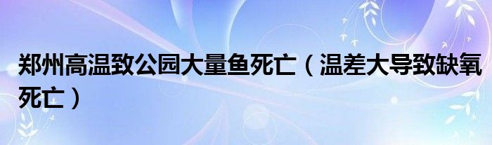 大家好,綜合小編來為大家講解下。鄭州高溫致公園大量魚死亡,溫差大導致缺氧死亡很多人還不知道,現在讓我們一起來看看吧!