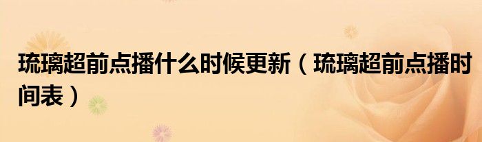 大家好,綜合小編來為大家講解下。琉璃超前點(diǎn)播什么時候更新,琉璃超前點(diǎn)播時間表很多人還不知道,現(xiàn)在讓我們一起來看看吧!