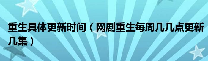 大家好,綜合小編來為大家講解下。重生具體更新時間,網劇重生每周幾幾點更新幾集很多人還不知道,現在讓我們一起來看看吧!