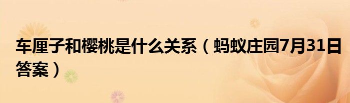 7月31日螞蟻莊園問題是:車厘子和櫻桃是什么關系 ?很多小伙伴都不知道車厘子和櫻桃是什么關系 ,那么小編就為大家分享下7月31日螞蟻莊園課題問題的答案,希望對大家有所幫助!
