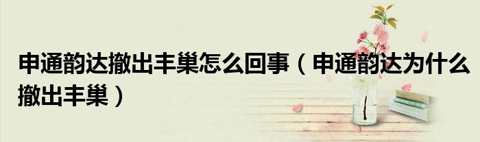 大家好,綜合小編來為大家講解下。申通韻達撤出豐巢怎么回事,申通韻達為什么撤出豐巢很多人還不知道,現在讓我們一起來看看吧!