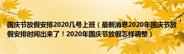 大家好,綜合小編來為大家講解下。國慶節(jié)放假安排2020幾號上班,最新消息2020年國慶節(jié)放假安排時間出來了!2020年國慶節(jié)放假怎樣調(diào)整很多人還不知道,現(xiàn)在讓我們一起來看看吧!