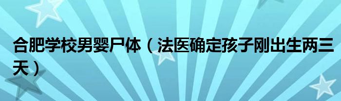 大家好,綜合小編來為大家講解下。合肥學校男嬰尸體,法醫確定孩子剛出生兩三天很多人還不知道,現在讓我們一起來看看吧!