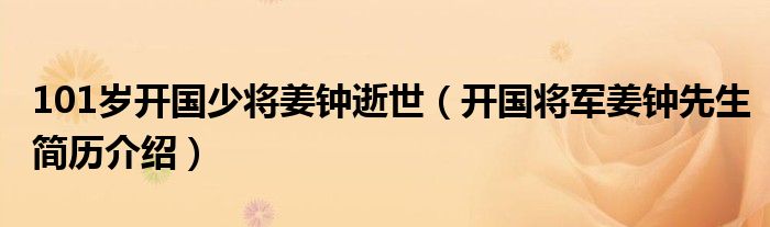大家好,綜合小編來為大家講解下。101歲開國少將姜鐘逝世,開國將軍姜鐘先生簡歷介紹很多人還不知道,現(xiàn)在讓我們一起來看看吧!