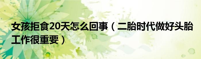 大家好,綜合小編來為大家講解下。女孩拒食20天怎么回事,二胎時代做好頭胎工作很重要很多人還不知道,現在讓我們一起來看看吧!