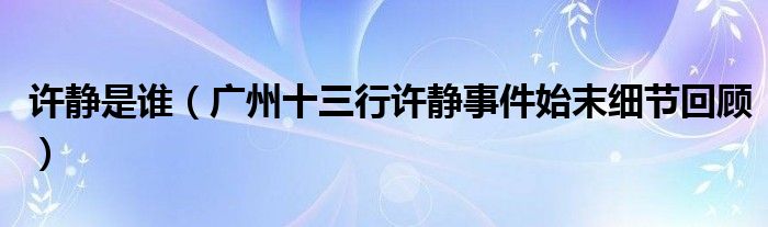 大家好,綜合小編來為大家講解下。許靜是誰,廣州十三行許靜事件始末細節回顧很多人還不知道,現在讓我們一起來看看吧!