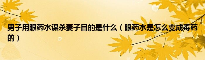大家好,綜合小編來(lái)為大家講解下。男子用眼藥水謀殺妻子目的是什么,眼藥水是怎么變成毒藥的很多人還不知道,現(xiàn)在讓我們一起來(lái)看看吧!