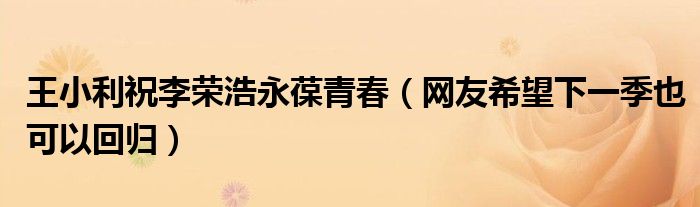 大家好,綜合小編來為大家講解下。王小利祝李榮浩永葆青春,網(wǎng)友希望下一季也可以回歸很多人還不知道,現(xiàn)在讓我們一起來看看吧!