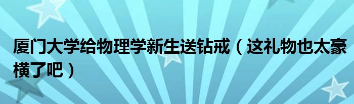 大家好,綜合小編來為大家講解下。廈門大學給物理學新生送鉆戒,這禮物也太豪橫了吧很多人還不知道,現在讓我們一起來看看吧!
