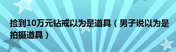 大家好,綜合小編來為大家講解下。撿到10萬元鉆戒以為是道具,男子說以為是拍攝道具很多人還不知道,現在讓我們一起來看看吧!