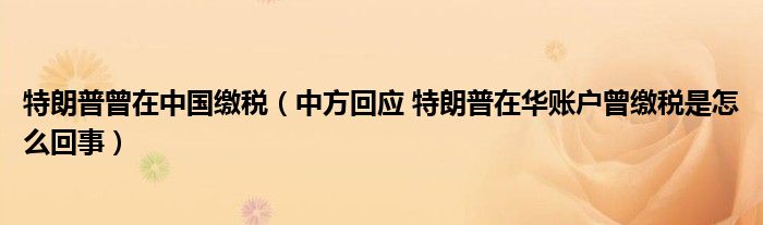 大家好,綜合小編來(lái)為大家講解下。特朗普曾在中國(guó)繳稅,中方回應(yīng) 特朗普在華賬戶(hù)曾繳稅是怎么回事很多人還不知道,現(xiàn)在讓我們一起來(lái)看看吧!