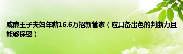 大家好,綜合小編來為大家講解下。威廉王子夫婦年薪16.6萬招新管家,應具備出色的判斷力且能夠保密很多人還不知道,現在讓我們一起來看看吧!