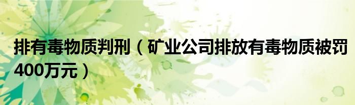 大家好,綜合小編來為大家講解下。排有毒物質判刑,礦業公司排放有毒物質被罰400萬元很多人還不知道,現在讓我們一起來看看吧!
