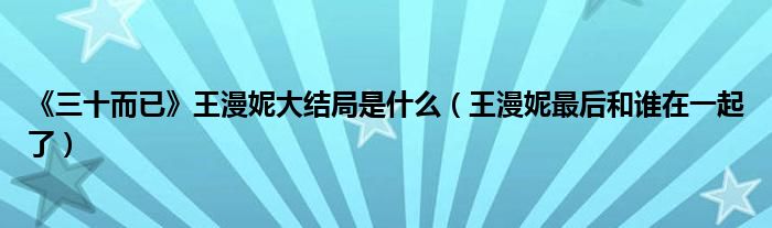 大家好,綜合小編來為大家講解下。《三十而已》王漫妮大結(jié)局是什么,王漫妮最后和誰在一起了很多人還不知道,現(xiàn)在讓我們一起來看看吧!