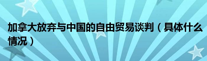 大家好,綜合小編來為大家講解下。加拿大放棄與中國的自由貿易談判,具體什么情況很多人還不知道,現在讓我們一起來看看吧!