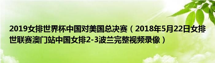 大家好,綜合小編來為大家講解下。2019女排世界杯中國對美國總決賽,2018年5月22日女排世聯賽澳門站中國女排2-3波蘭完整視頻錄像很多人還不知道,現在讓我們一起來看看吧!