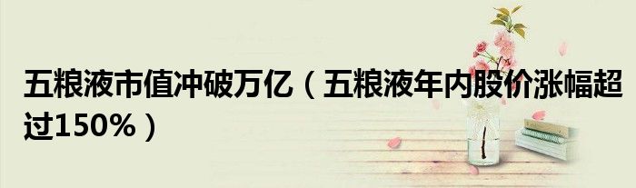 大家好,綜合小編來為大家講解下。五糧液市值沖破萬億,五糧液年內(nèi)股價(jià)漲幅超過150%很多人還不知道,現(xiàn)在讓我們一起來看看吧!